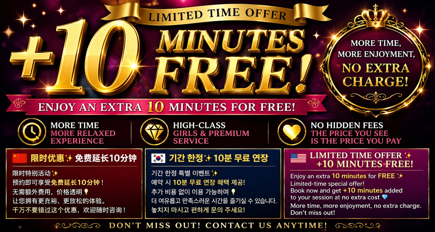 Limited Time Offer ✨ +10 Minutes FREE4/23 16:47Enjoy an extra 10 minutes for FREE ✨